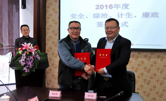 梁書記和生產總監葉耀成進行安全、綜治簽約