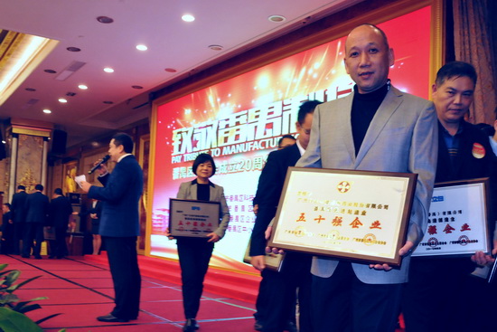 39日夜,由廣州市番禺區廠商會、廣州市番禺區企業聯合會、廣州市番禺區中小企業協會聯合舉辦的主題為“致敬番禺制造”的番禺區廠商會成立20周年暨表彰大會在番禺賓館隆重舉行。各級領導、會員單位、企業代表逾700人歡聚一堂;領導致辭、回故展望、文藝表演、表彰先進等有聲有色。“振興實體,不忘初心,創新發展”50家番禺區先進制造業50強企業代表在臺上莊嚴宣勢!發出時代強音!令人矚目振奮。我司分獲“番禺區先進制造業50強企業”、“廣州市勞動關系和諧企業” 稱號。副總經理劉永忠代表我司出席大會并上臺領獎。