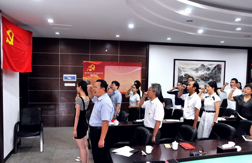 大會首先進行新黨員入黨宣誓儀式,老黨員重溫入黨誓詞.全體與會黨員面向黨旗莊嚴宣誓,由張奇志書記領誓。-—“我志愿加入中國共產黨……對黨忠誠,積極工作,為共產主義奮斗終身,隨時準備為黨和人民犧牲一切,永不叛黨。”