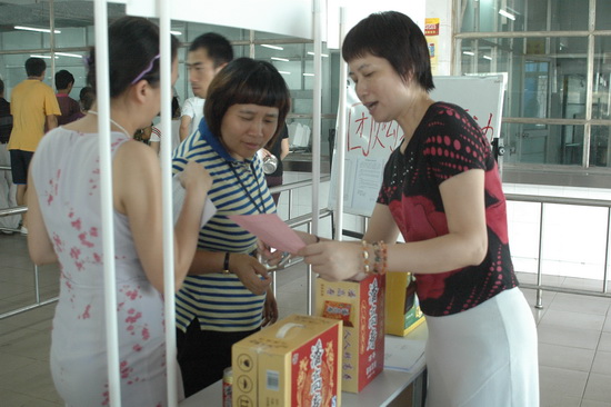 一連兩天(18、19日)中午,工會牽頭,團購組在公司飯堂“招商”——廣招兼職團購業務員。涼茶、龜苓膏以及新品種枇杷飲料一應俱全。眾員工積極響應,問情況,拿資料,愿做團購業務員,要為營銷出份力。