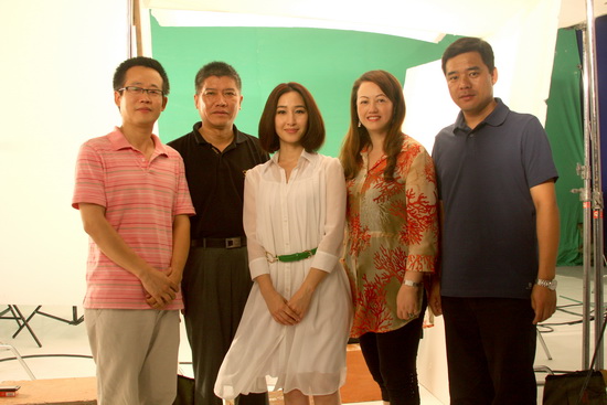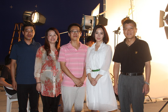 公司和產(chǎn)品營(yíng)銷(xiāo)中心主要領(lǐng)導(dǎo)親臨拍攝現(xiàn)場(chǎng)跟進(jìn)相關(guān)工作,從左至右分別為市場(chǎng)總監(jiān)程宏輝、公司副總經(jīng)理徐文流、影視明星關(guān)詠荷、市場(chǎng)部副經(jīng)理戴梅和銷(xiāo)售二部總監(jiān)王運(yùn)龍